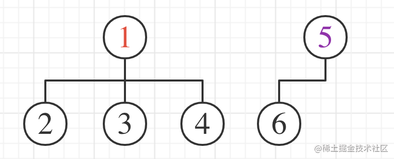 继续来看看第二个问题:判断主机 2和主机 4是否在一个局域网内,再来回看上面的一个图,要判断两个主机是否在一个局域网内,问题可以转化为:这两个主机的根节点是否相同,如果相同则在同一个局域网中。