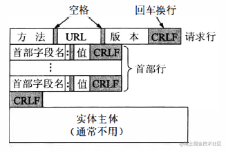 方法,URL,版本号,以空格隔开,最后面是一个换行符\r\n
