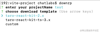 可以看到,在输入命令后会让你填写一些项目的基本信息:项目名,项目框架还有代码种类。
