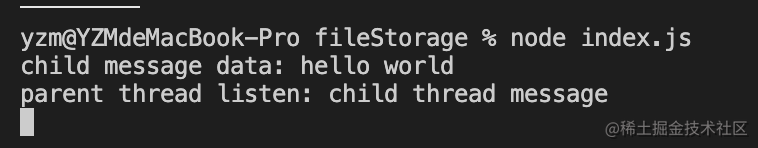 parentPort.postMessage("hello child thread");