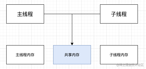 如图所示,使用SharedArrayBuffer创建的值会分配到共享内存中,所有线程都可以共用这块内存。