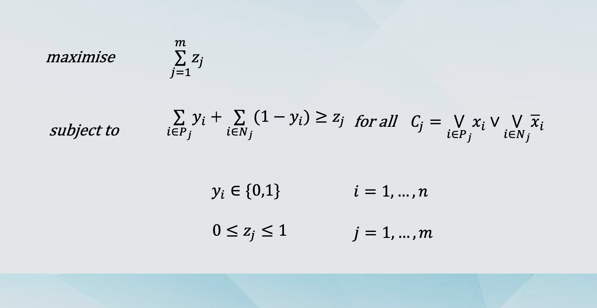 Variables: zj = 1 if clause Cj is satisfied and 0 otherwise.