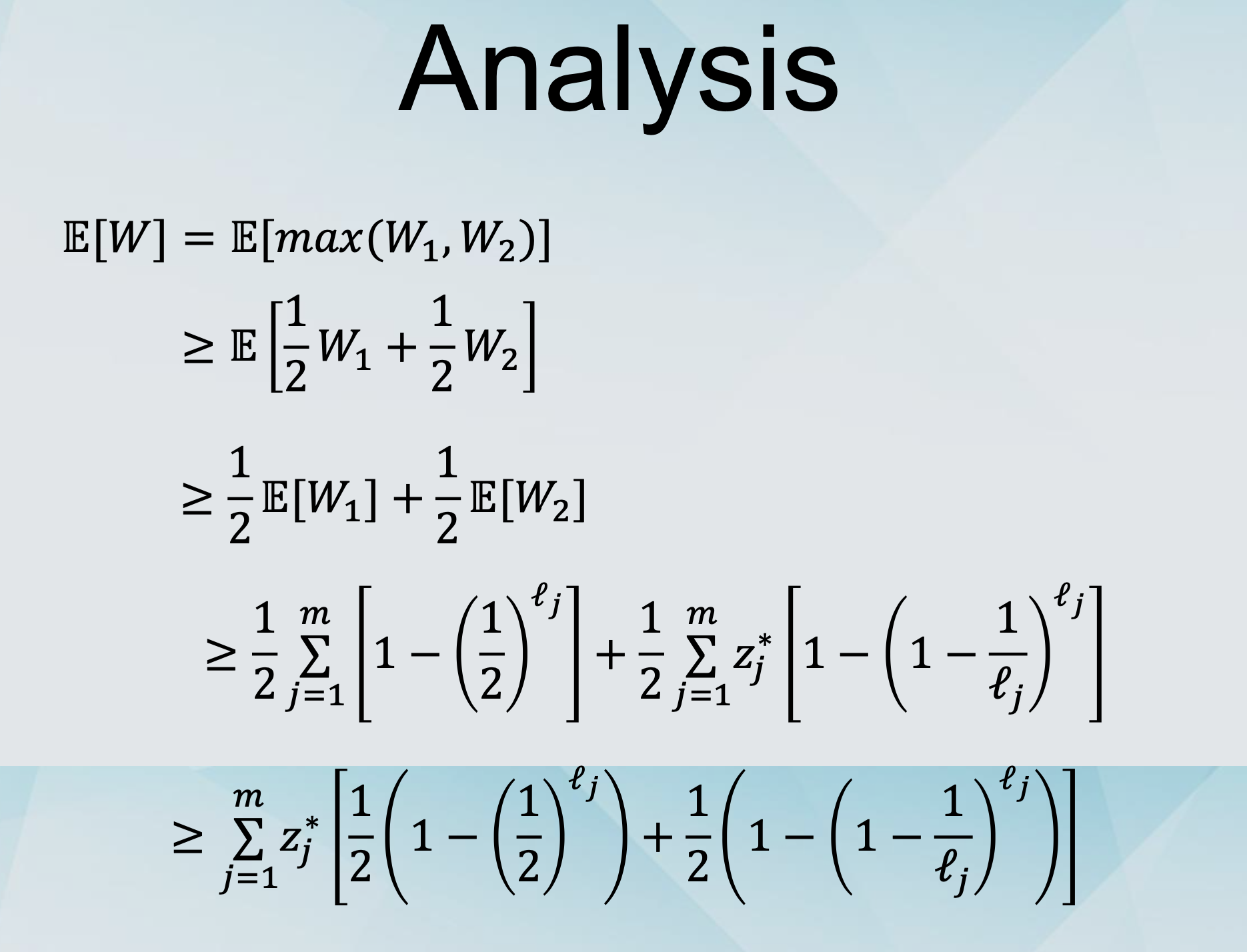 𝔼[𝑊] = 𝔼[𝑊|𝑥 ←1]⋅Pr[𝑥 ←1]+𝔼[𝑊|𝑥 ←0]⋅Pr[𝑥 ←0]