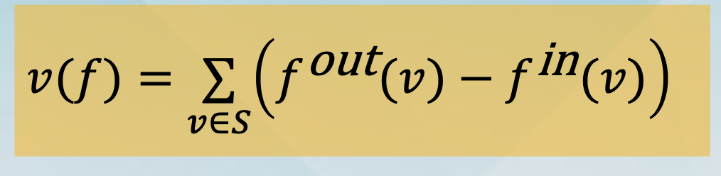 Fact 2: Let f by any (s-t) flow and (S, T) be any (s-t) cut. Then v(f) = fin(T) - fout(T).