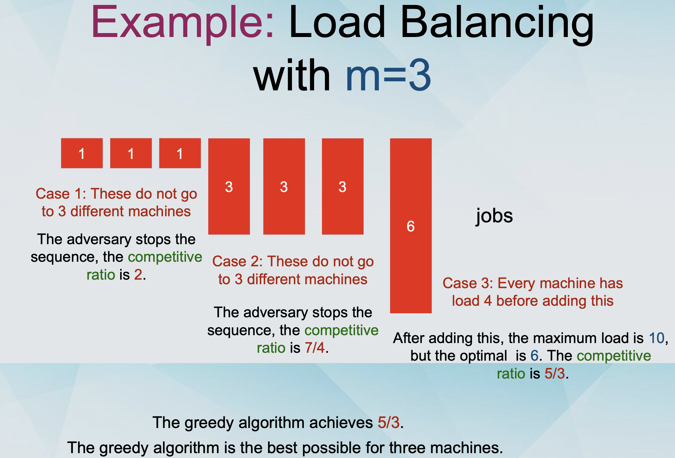 Competitive Ratio: The constraint of our algorithm is that it does not know the future part of the input. If we had access to the future part of the input, we would obtain the optimal.