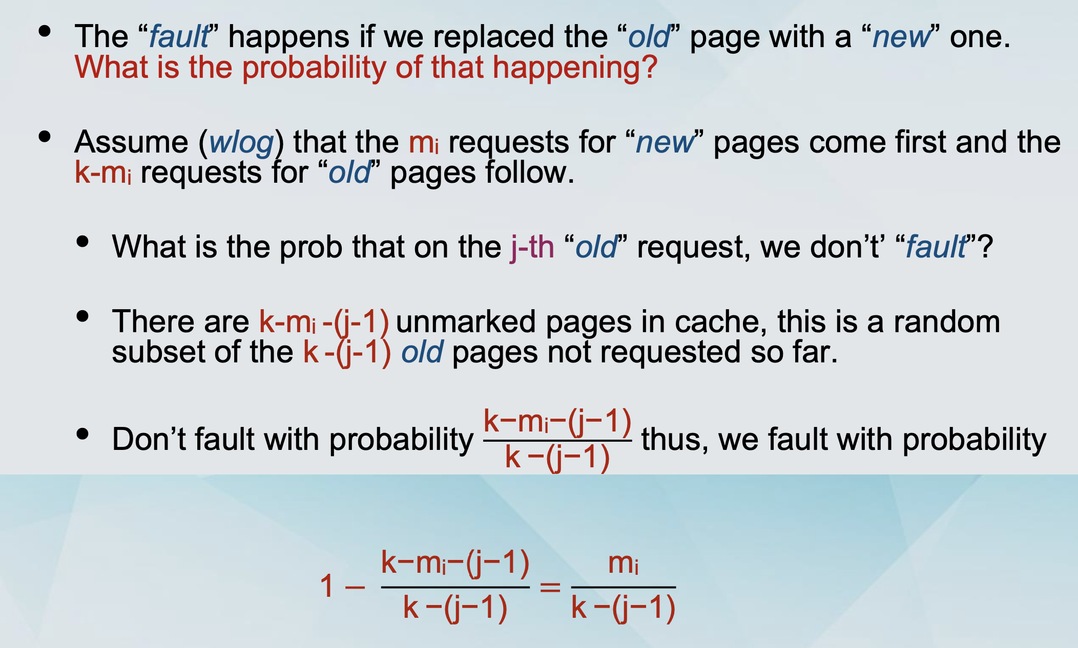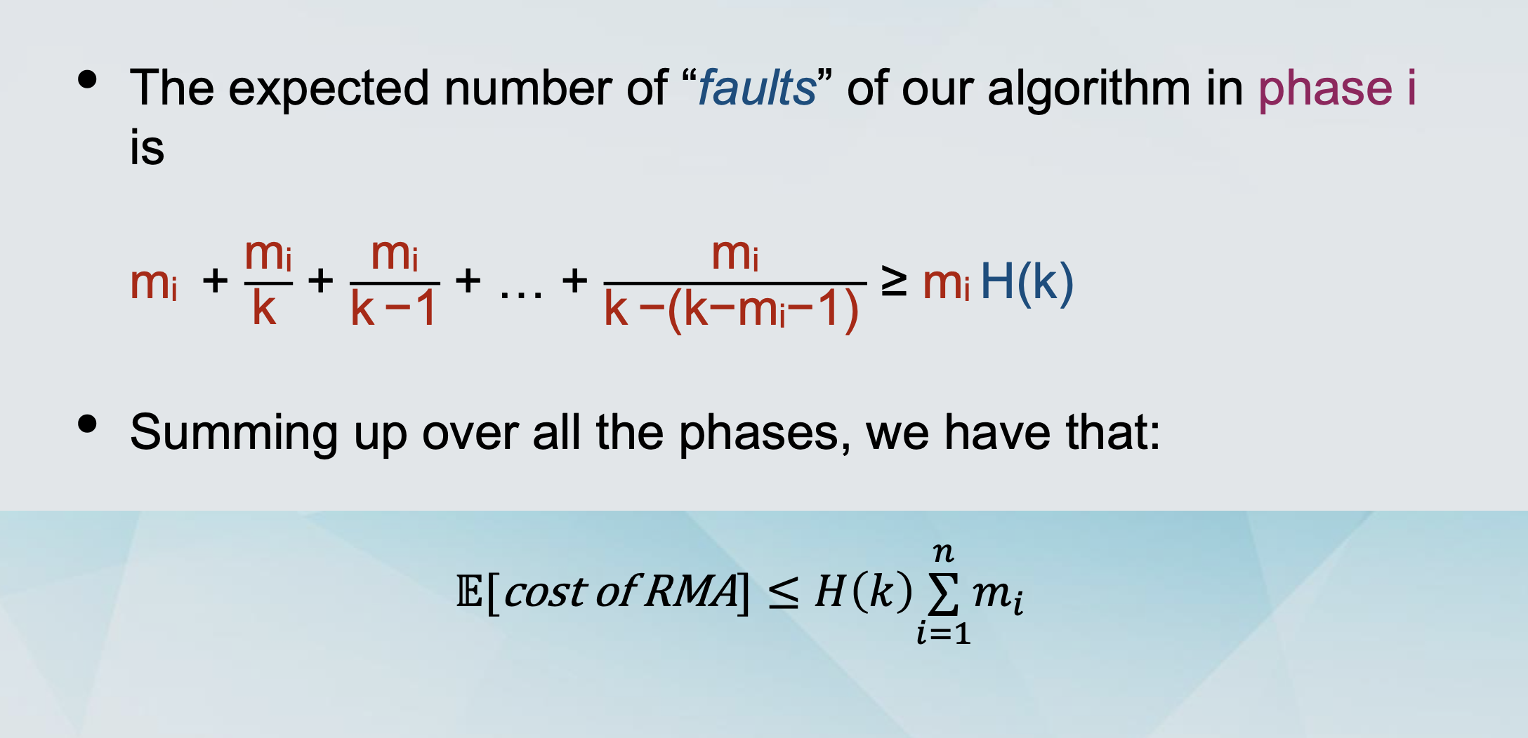 call the remaining k-mi distinct pages in the phase “old”. • Every time a “new” page is requested, we have a “fault”.