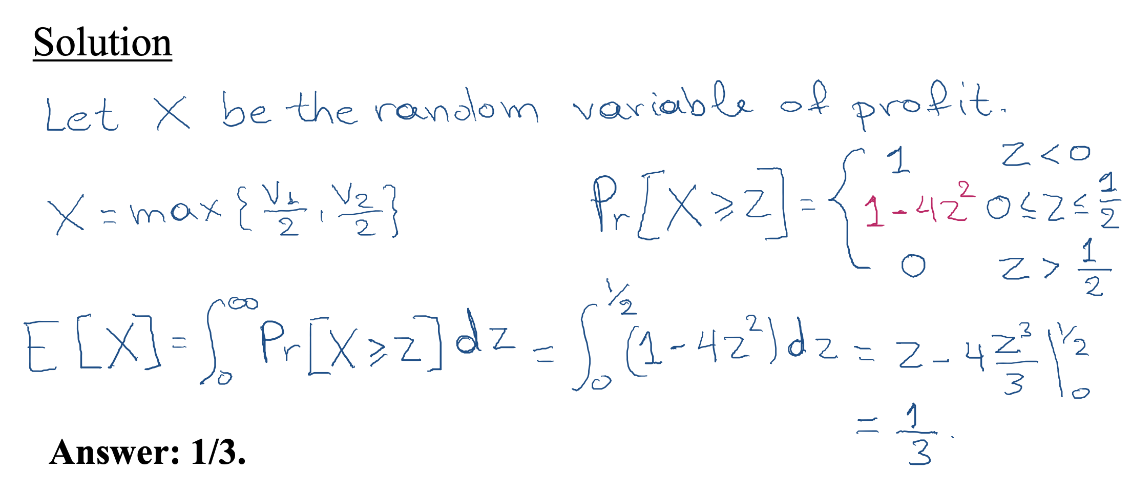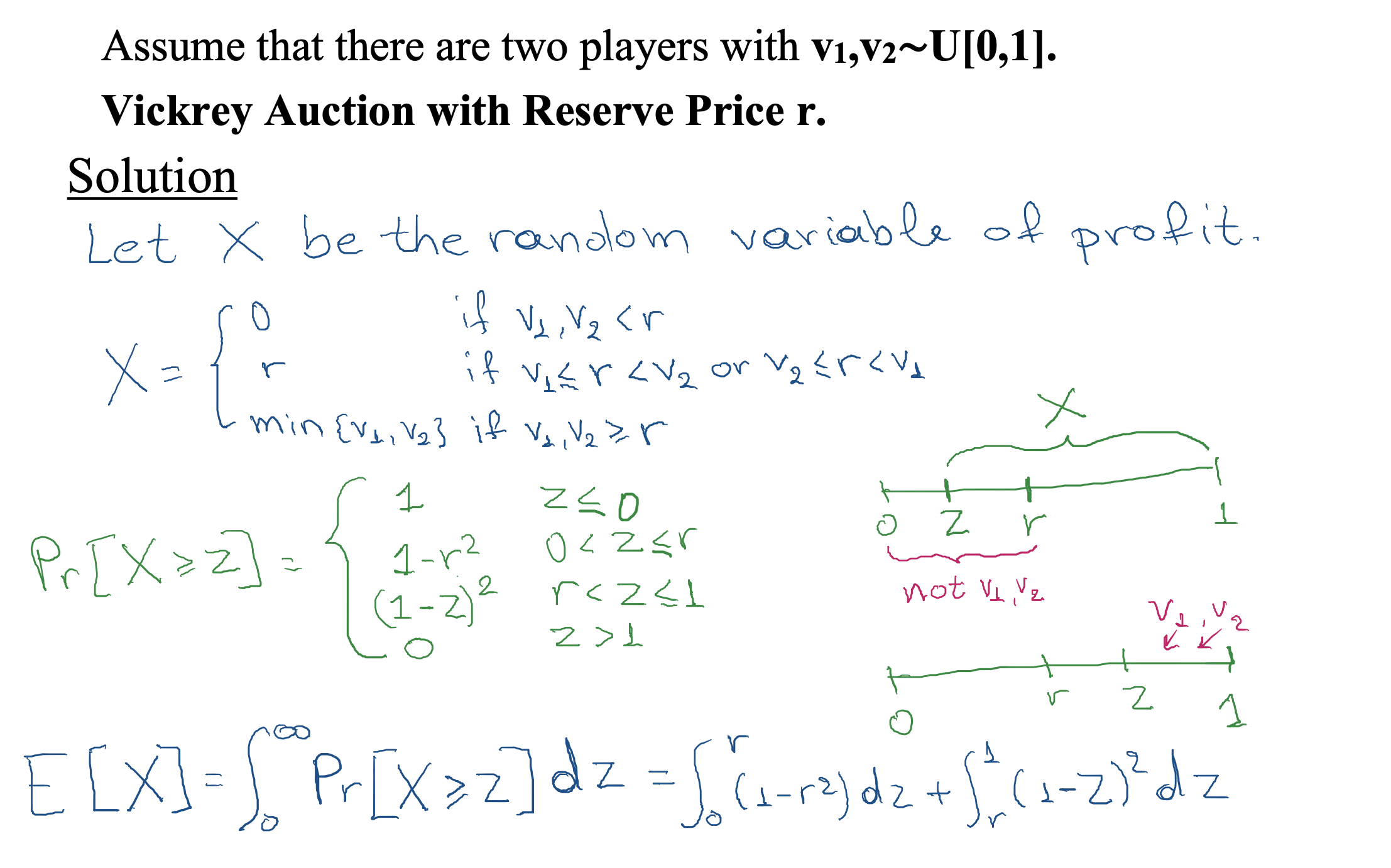 ` - Truthful auction: we consider b1(v1)=v1, b2(v2)=v2.