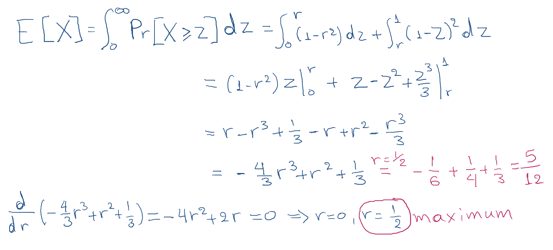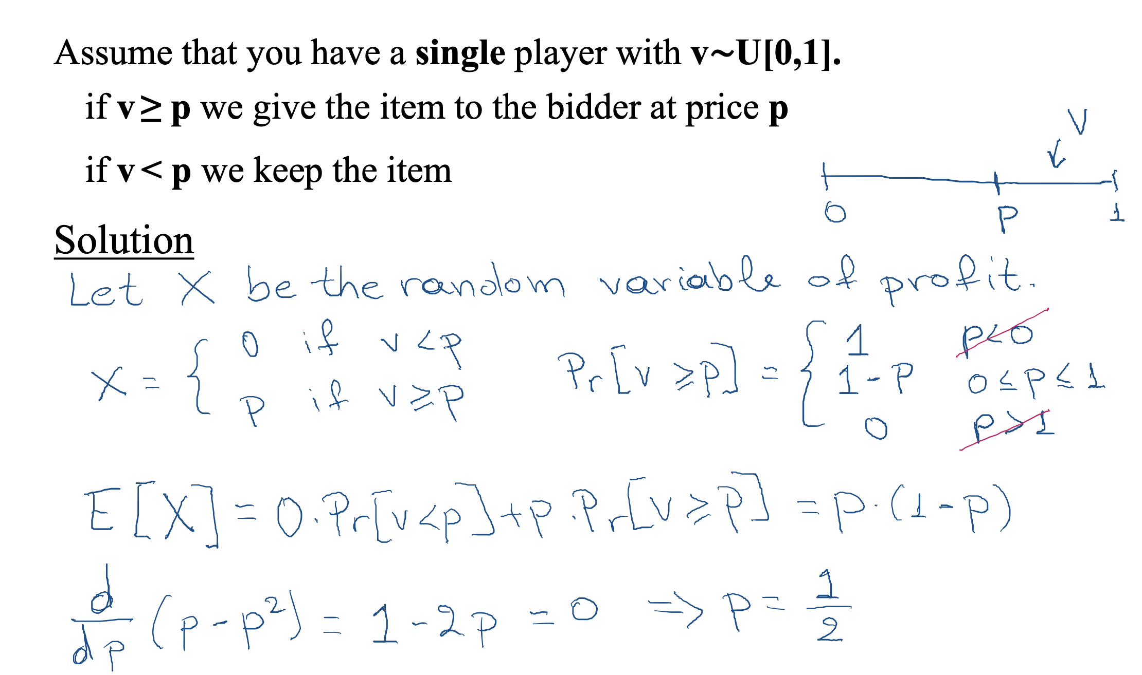 The optimal price is p=1/2 and gives us expected revenue 1/4.