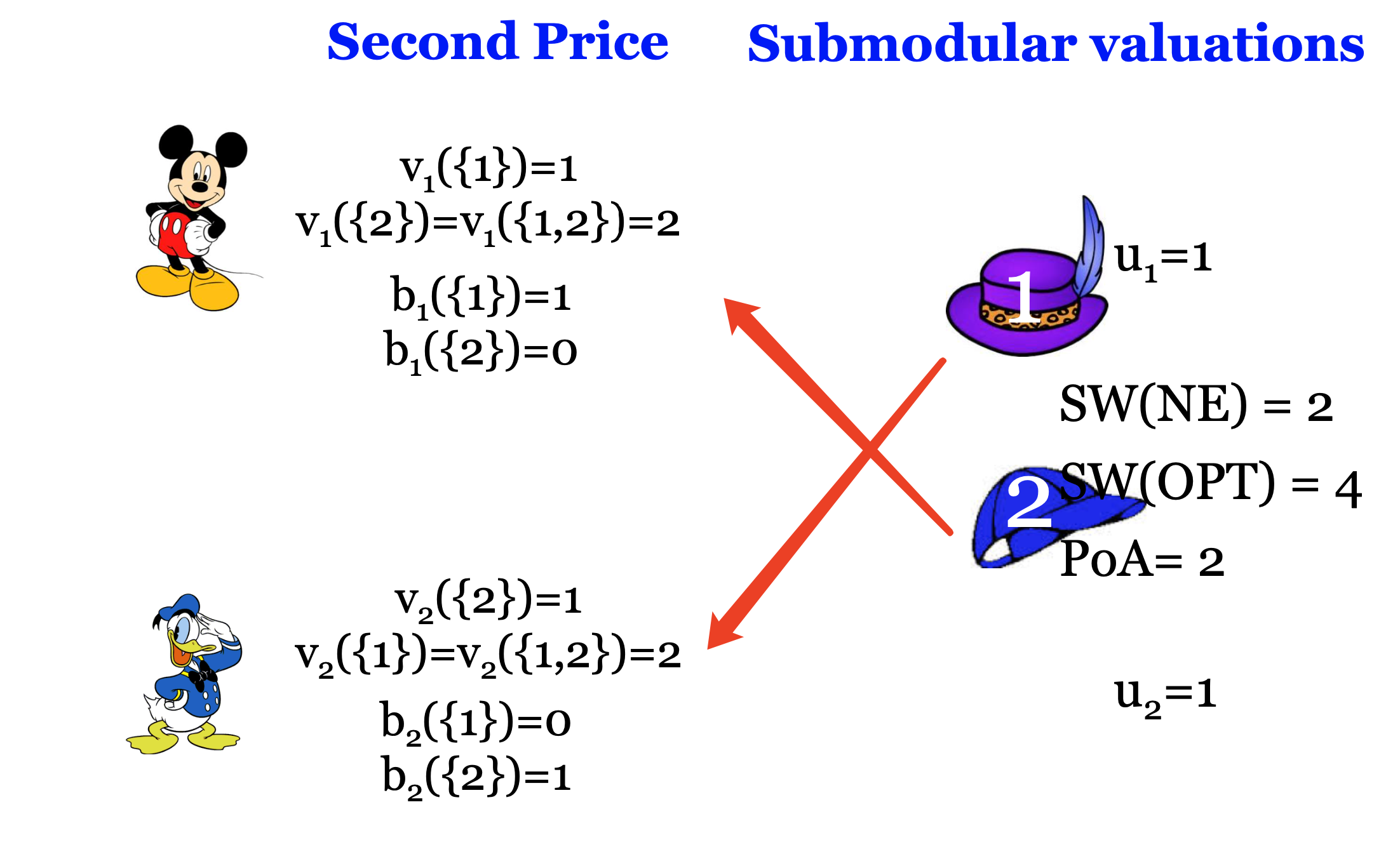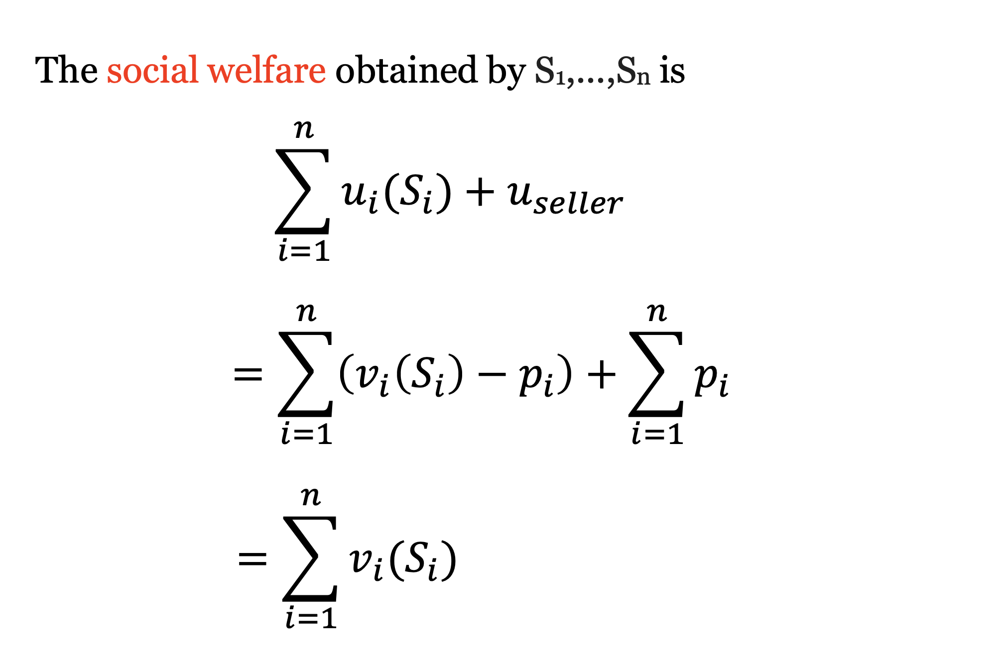 - Theorem. The DNS mechanism is efficiently computable, incentive compatible and produces a O(m1/2) approximation of the optimal social welfare for subadditive valuations.