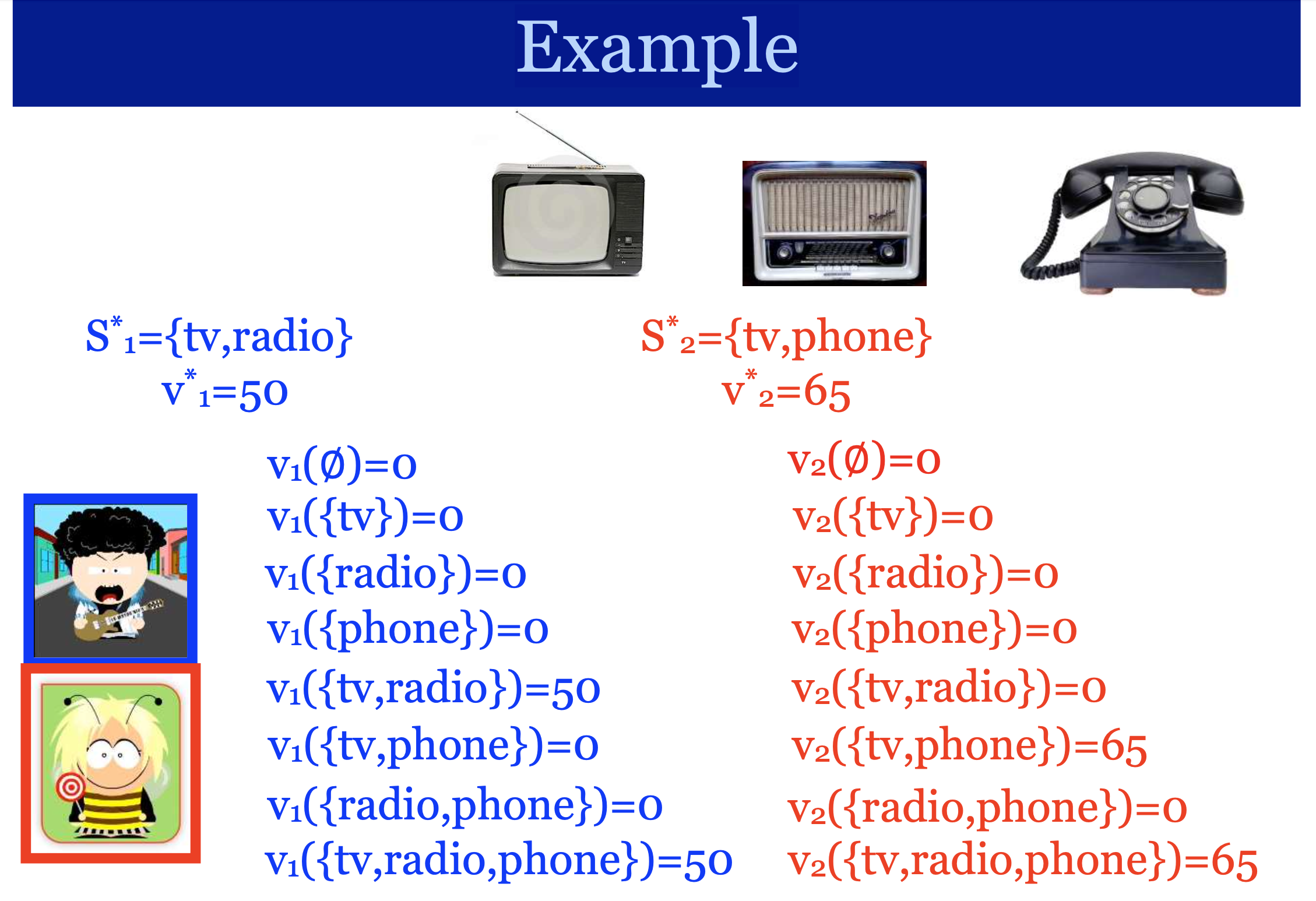 - The auctioneer presents a bundle S, the bidder reports his value v(S) for this bundle.