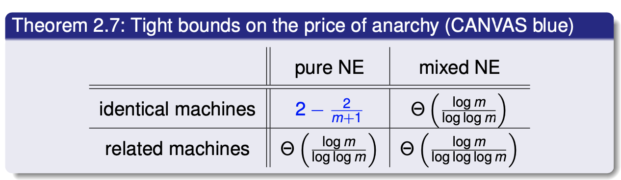 - the social cost is the makespan: cost(A) = maxj∈[m]{l_j}