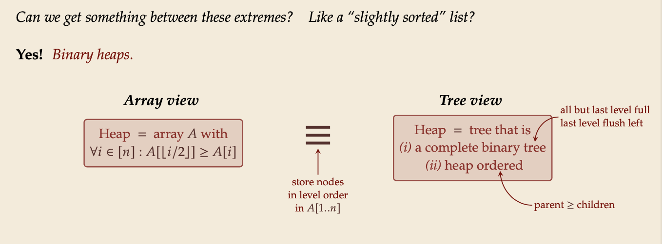 - sorted list ⇝ Θ(1) delMax, but Θ(𝑛) insert