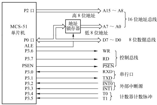 位地址总线由 P0口经地址锁存器提供低8位地址(A0~A7);P2口直接提供高8位地址
