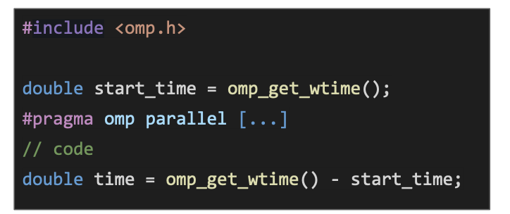 I’ve mentioned before that there are multiple ways to time things in C The best method while using OpenMP is to use omp_get_wtime() You don’t have to worry about clock cycles etc