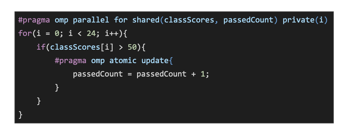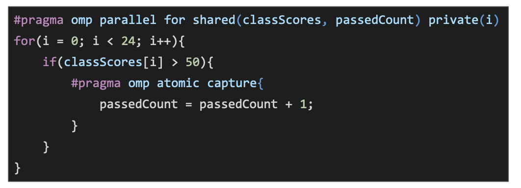 #pragma omp atomic capture - This is a complete lock, similar to a critical region, however this requires hardware support for this feature. If the support doesn’t exist then it default to a critical region, which has some additional overhead