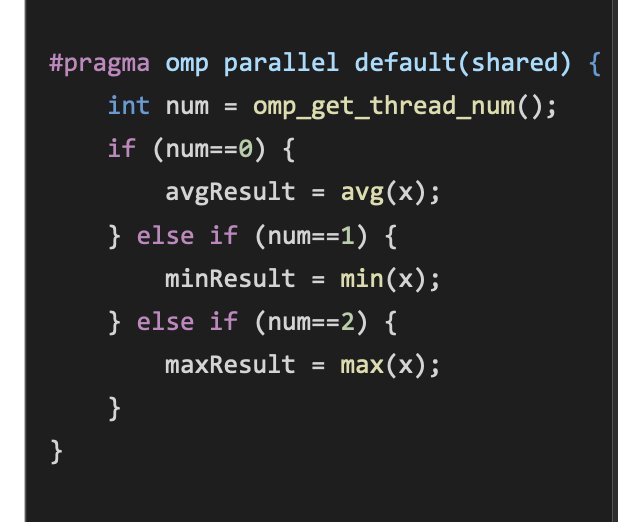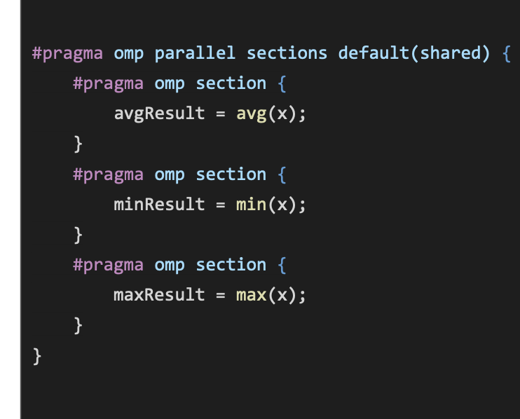 #pragma omp section - Defines some work that only needs to be carried out by a single thread