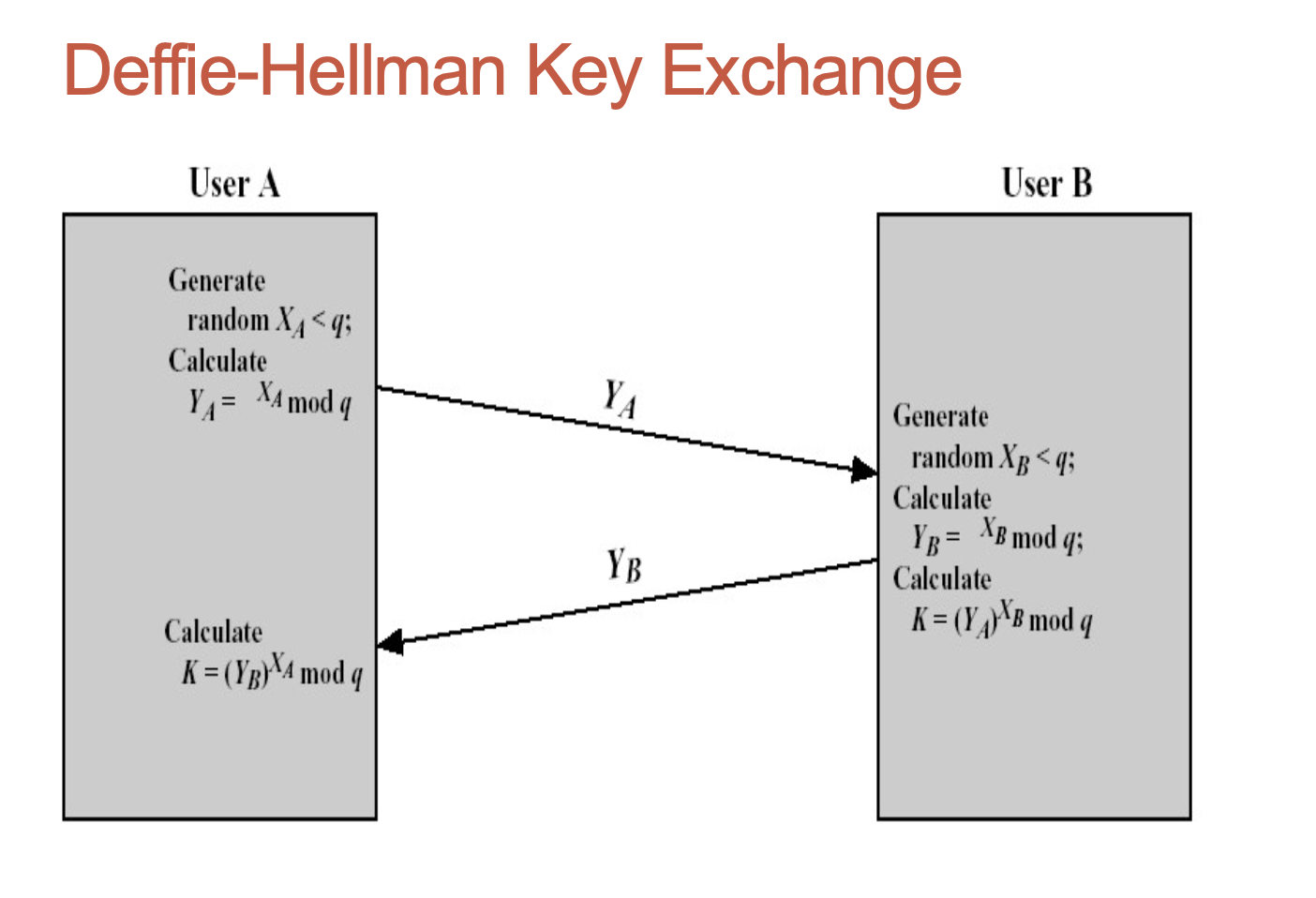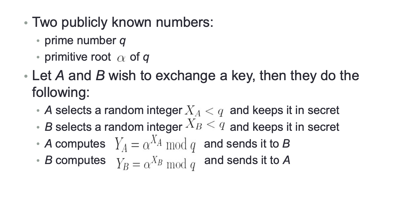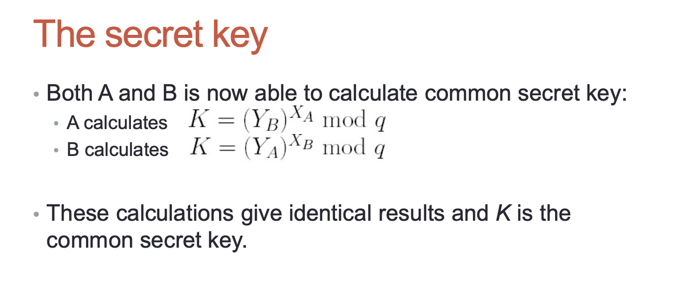 - Two parties (users) execute some algorithm (protocol) and get a common secret key;