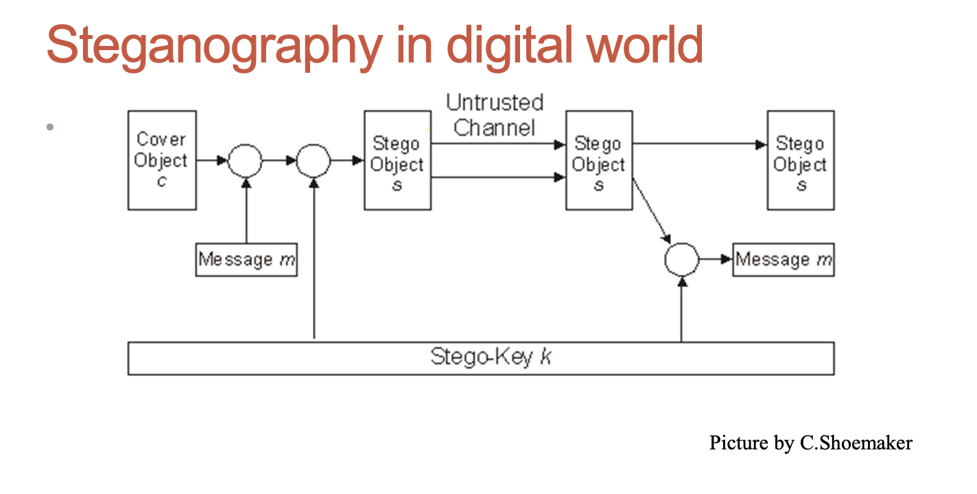 - Steganography, derived from “covered writing” in Greek
