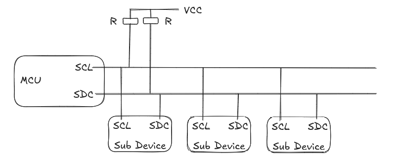 I2C 是一种用于 MCU 和外围设备进行通信的总线,属于一个主设备,多个从设备的总线结构,总线上的每个设备都有一个特定的设备地址,用来区分同一 I2C 总线上的设备。