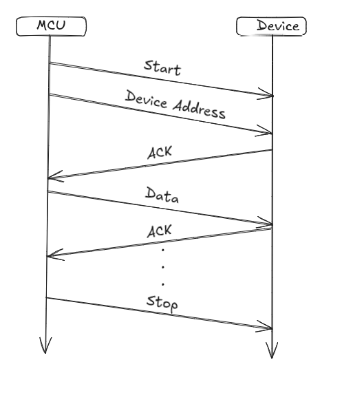 主设备发送数据到从设备,一般发送的每个字节数据后会跟着等待接收来自从设备的响应(ACK)