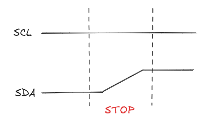 - 停止(STOP)信号: I2C 通信的停止信号由主设备终止,SCL 保持高电平,SDA 由低电平跳变到高电平。