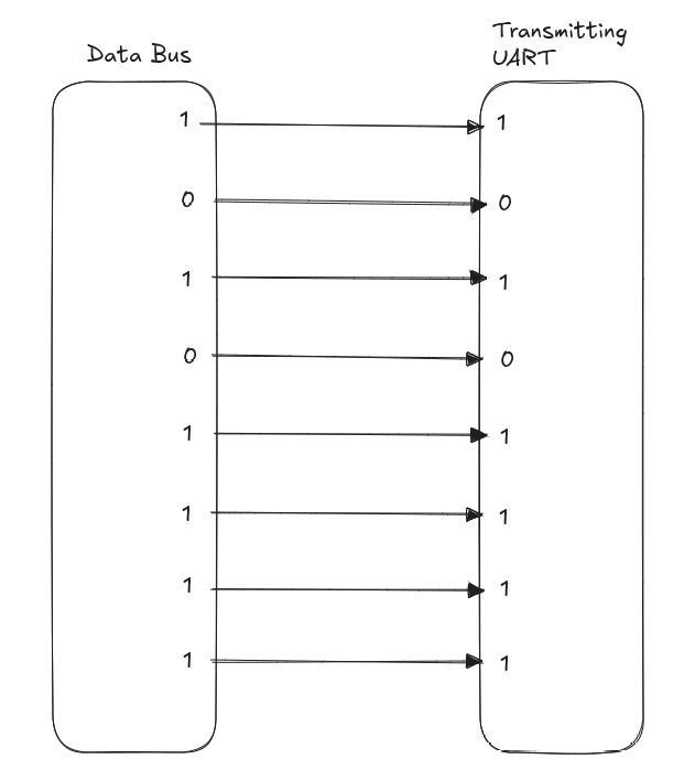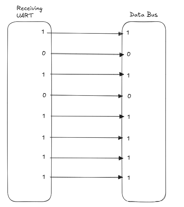 - 接收器将串行数据转换回并行数据,并将其传输到接收端的数据总线。