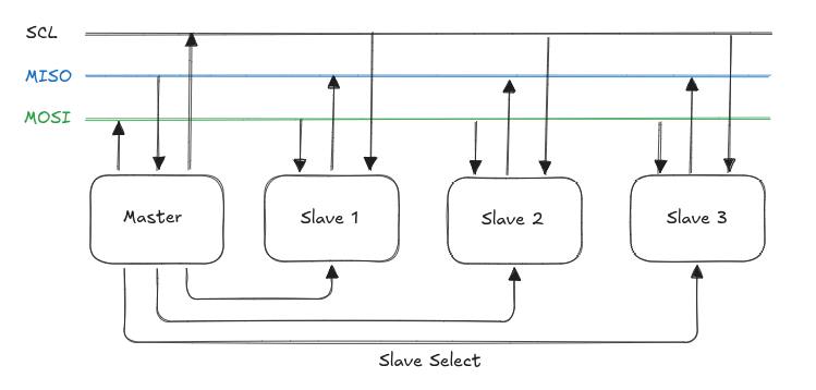 SPI规定两个SPI设备之间通信必须由主设备来控制次设备。一个Master设备可以通过提供Clock以及对Slave设备进行片选来控制多个slave设备。